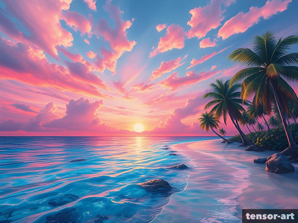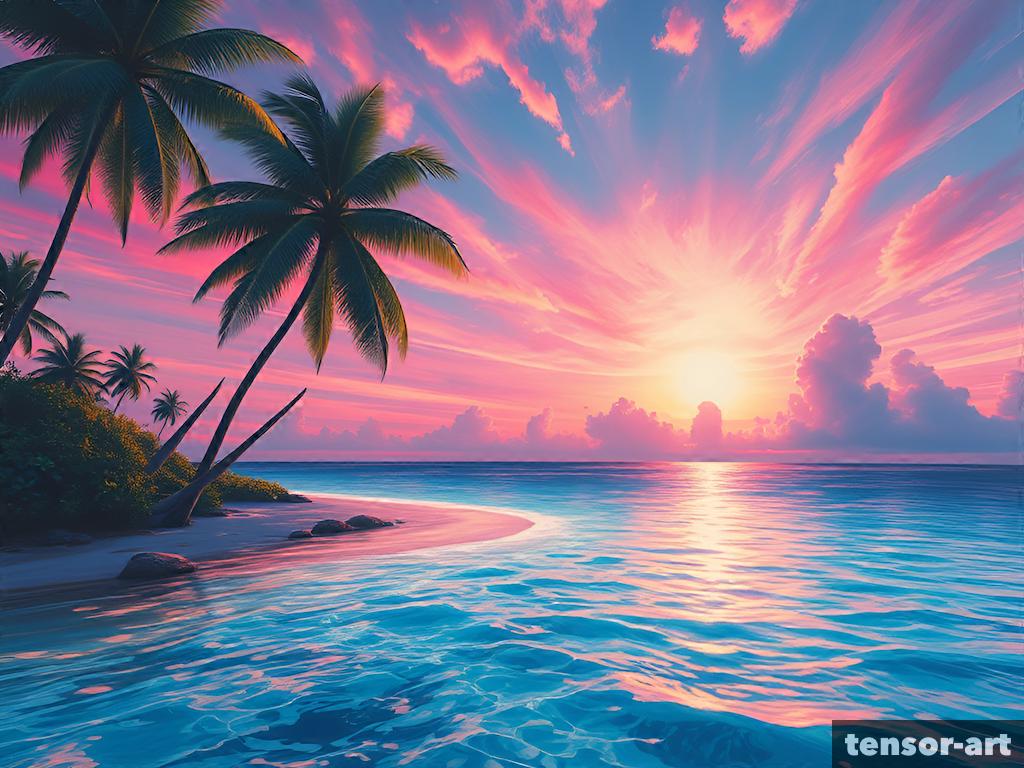 Surrealist tropical landscape